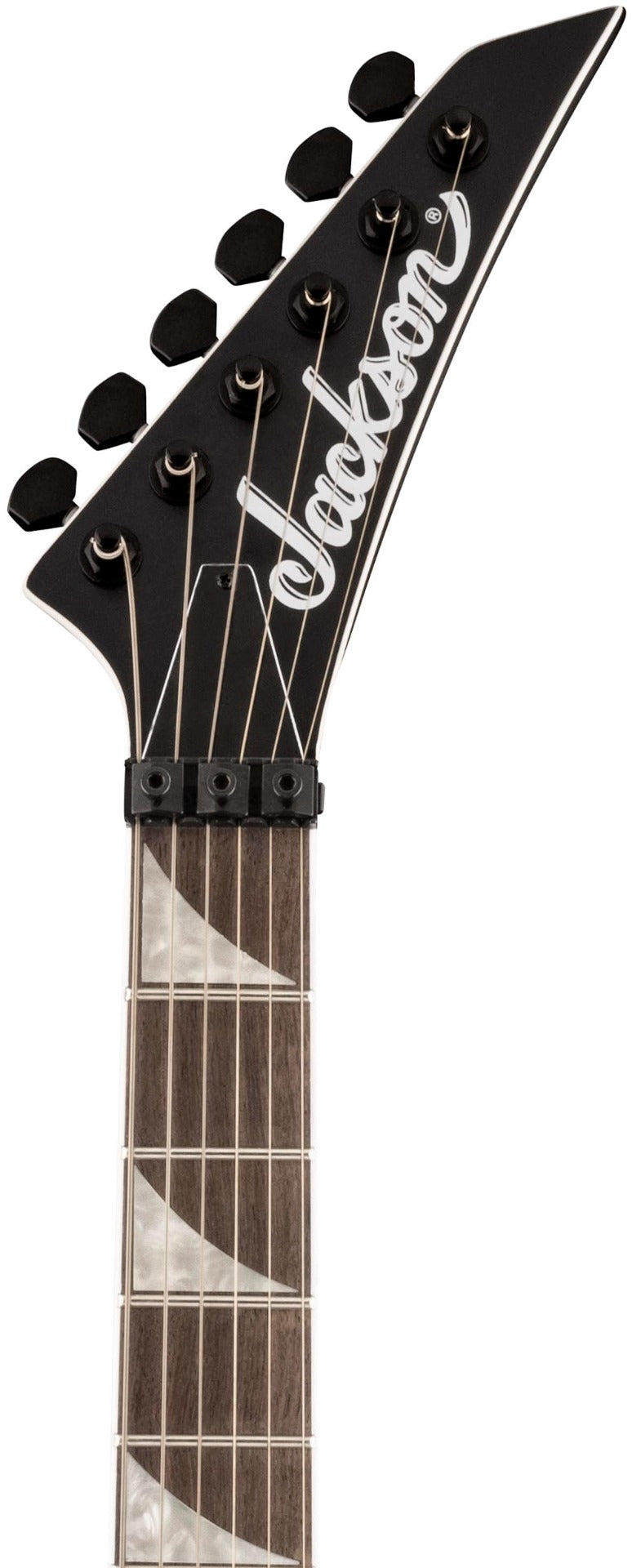 Ingrained with purebred Jackson DNA, ultra-fast playability and unbelievable value, the WRX24 features a 25.5” scale length, resonant poplar body and through-body maple neck with scarf joint and graphite reinforcement for solid stability that guards against climate and humidity changes. Hosting 24 jumbo frets and distinctive sharkfin inlays, the 12”-16” compound radius bound laurel fingerboard curves more dramatically at the nut for easy chording and flattens out as it approaches the neck joint for low-action bends without fretting out.