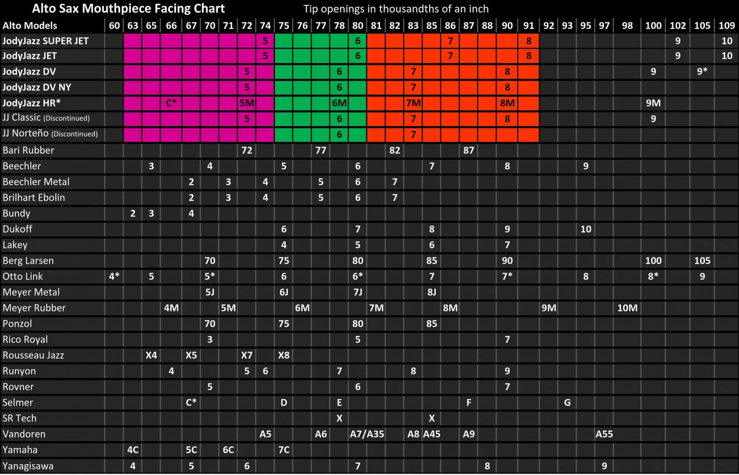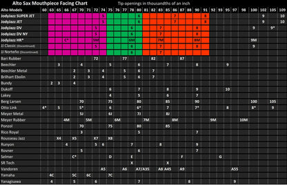 Due to the shorter facing curve on the SUPER JET a softer reed than you might normally use could be appropriate. This is because the reed actually has less length in which to vibrate. This doesn't hinder playing at all, in fact it makes the SUPER JET one of the greatest altissimo pieces of all time. Altissimo still works great with a little softer reed. These are my observations and how I like to play the SUPER JET. For example on a JodyJazz DV Alto 7, I play a D’Addario Select Jazz 3M, and on the SUPER JET, I prefer a 3S or 2H. The SUPER JET is very free-blowing but I think the SUPER JET's shorter facing curve makes a difference with the reed. The main message is that anytime you are trying a new mouthpiece two things are very important: finding the right reed for the mouthpiece and making sure that while you try the mouthpiece you are in tune. Don't assume that it will go on the neck in the same place as your previous mouthpiece. In fact the SUPER JET pushes on further than many mouthpieces. I love the SUPER JET and I hope you will too. Jody Espina – President, JodyJazz