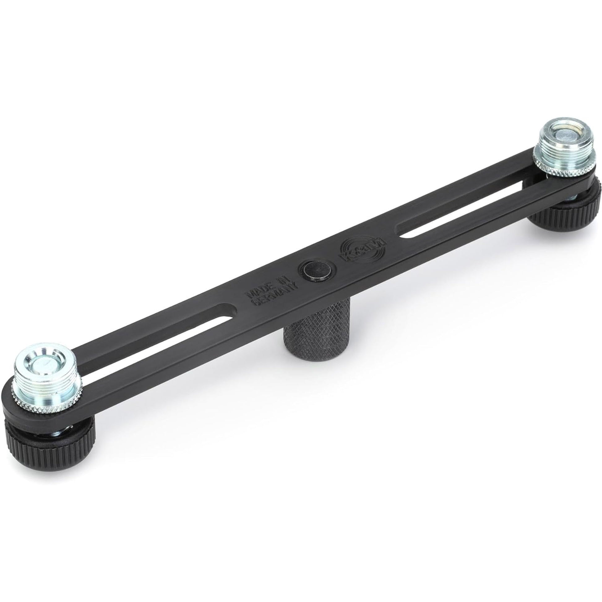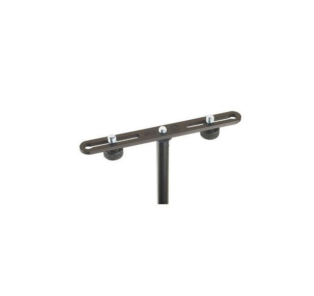 Connects to top of mic stands for holding 2 microphones or boom arms. 5/8" locking screws, adjustable from 2.36 to 6.77".