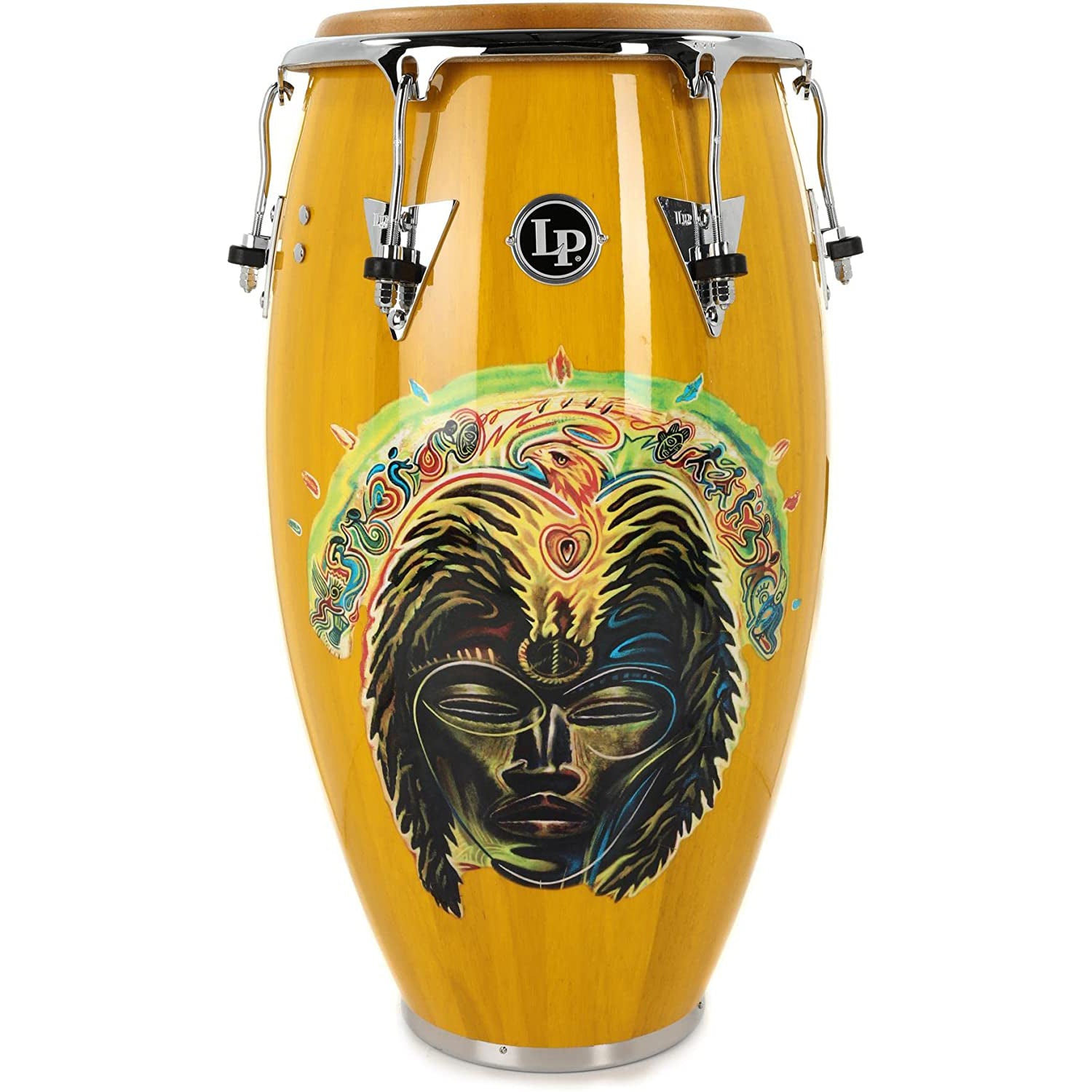 Latin Percussion is proud of the decade’s long relationship with Carlos Santana and honored to offer this commemorative Africa Speaks tumba. Based on LP's Classic Series, this Tumba features a vibrant yellow lacquer finish with incredibly intricate graphic art from the Santana Africa Speaks album.
