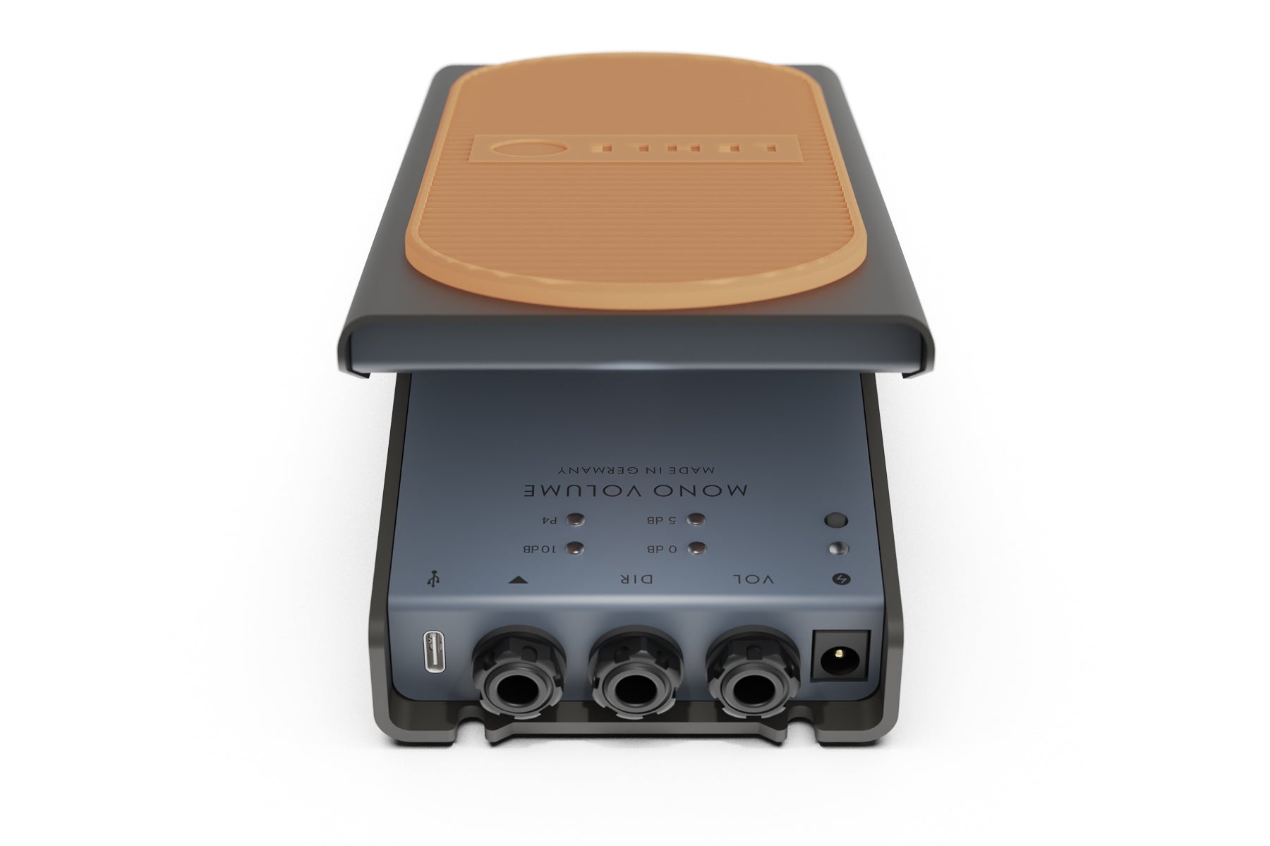 The USB-C socket provides the functionality to calibrate, program and update the LEHLE MONO VOLUME S – by the way it sends MIDI data to your DAW or amp simulation of your choice.