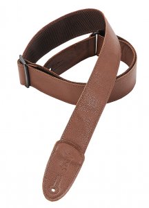 2" garment leather guitar strap with easy-slide polypropylene backing and tri-glide adjustment. Adjustable to 54".
