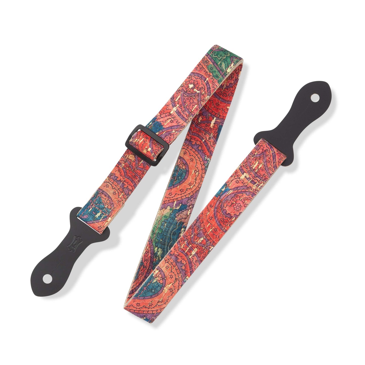 1″ Natural Cork Mandolin/Ukulele/Acoustic/Youth Strap With Paisley Design And Cream Garment Leather Back. Black Leather Double Pin Ends and Black Plastic Tri-glide Adjustment. Adjustable From 29″ to 49″.