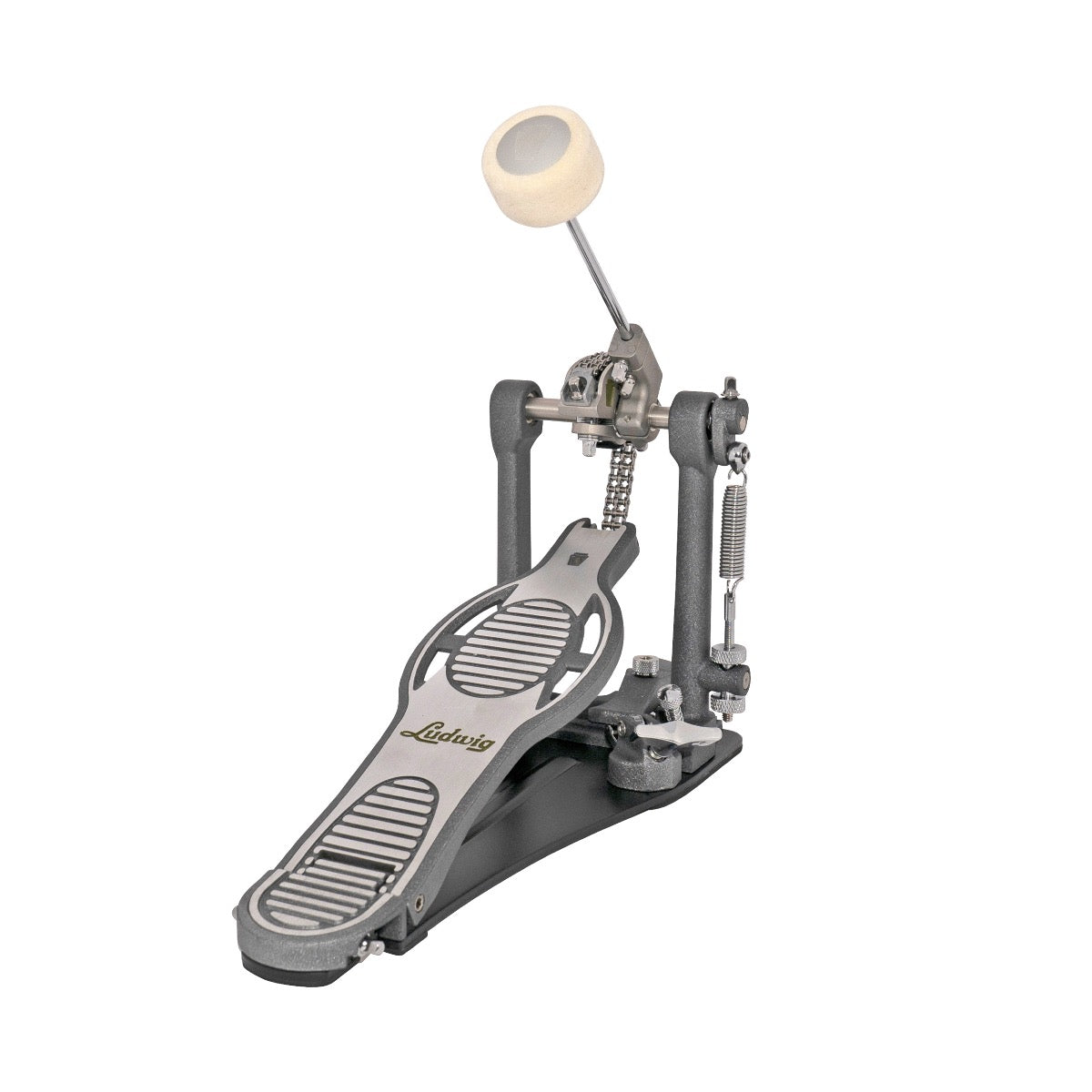 Built to fly! Ludwig is excited to release the new era of Speed Pedals for today’s drummers. Our top of the line bass drum pedal has more than just a new name. It’s been optimized extensively with the following features; improved beater with traditional Speed sizing and increased weight, improved heel with smooth action bearings, improved toe clamp to reduce hoop damage with secured grip, new ergonomic wing bolts and attached drum key, improved baseboard for added strength, orientation marks for easier cam adjustments, and anti-slip cam features for maximum stability. All with a new sleek look and design.
