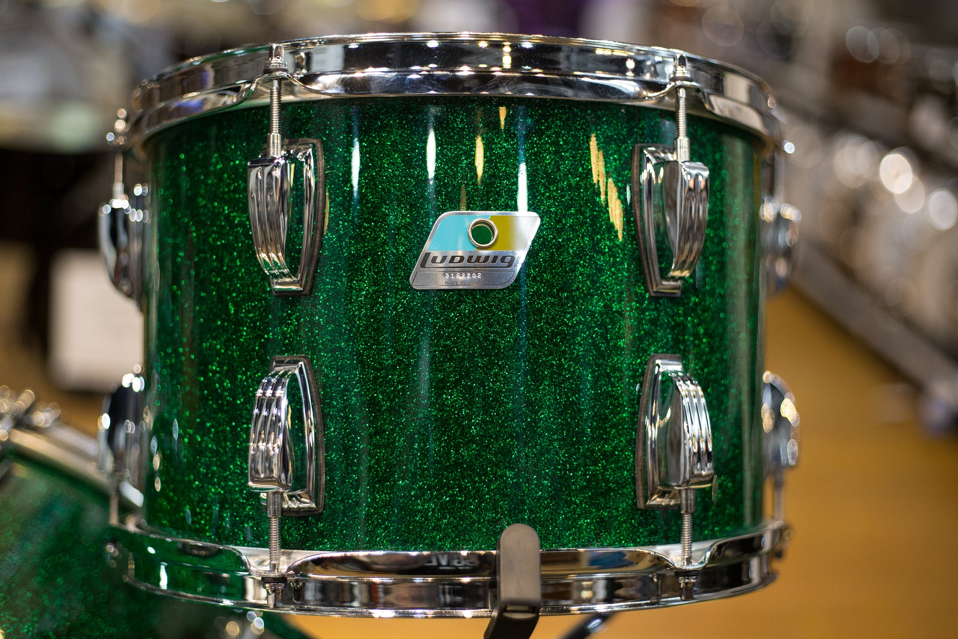 Ludwig is Celebrating 45 years of the Vistalite with this Green Sparkle Vistalite drum kit!