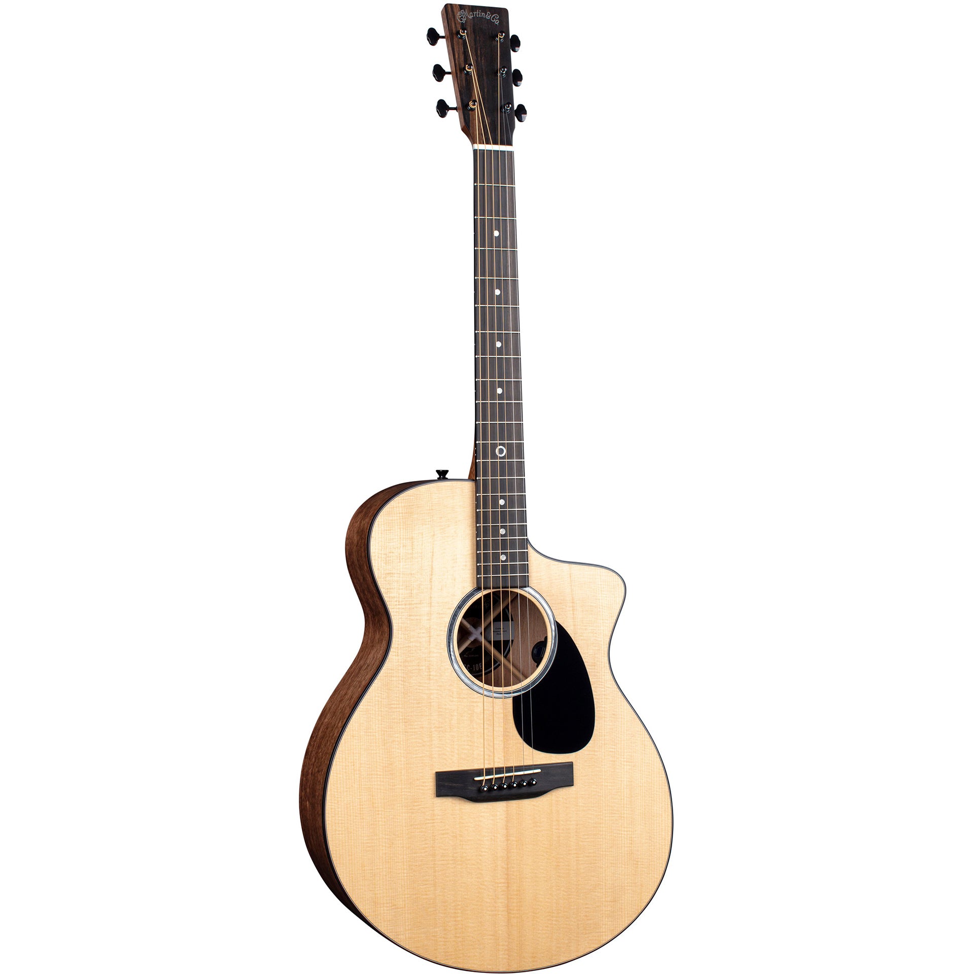 It’s time to rethink what an acoustic-electric guitar can do. Do you want to play leads all the way up the neck? Play longer? Play louder? Now you can with this super-comfortable, easy-to-play acoustic-electric from Martin. The SC-10E, with its patented Sure Align® neck system, gives you full access to all frets so you can comfortably reach those high notes. It’s also equipped with a low-profile velocity neck barrel that ergonomically accommodates your hand as you move up the neck, giving you the comfort and playability of an electric. The affordably priced SC-10E includes a satin finished sitka spruce top and stunning koa fine veneer back and sides. The design motif features a black and white aperture rosette inlay that is complimented by an ebony headplate, fingerboard, and bridge and black tuners and knobs.