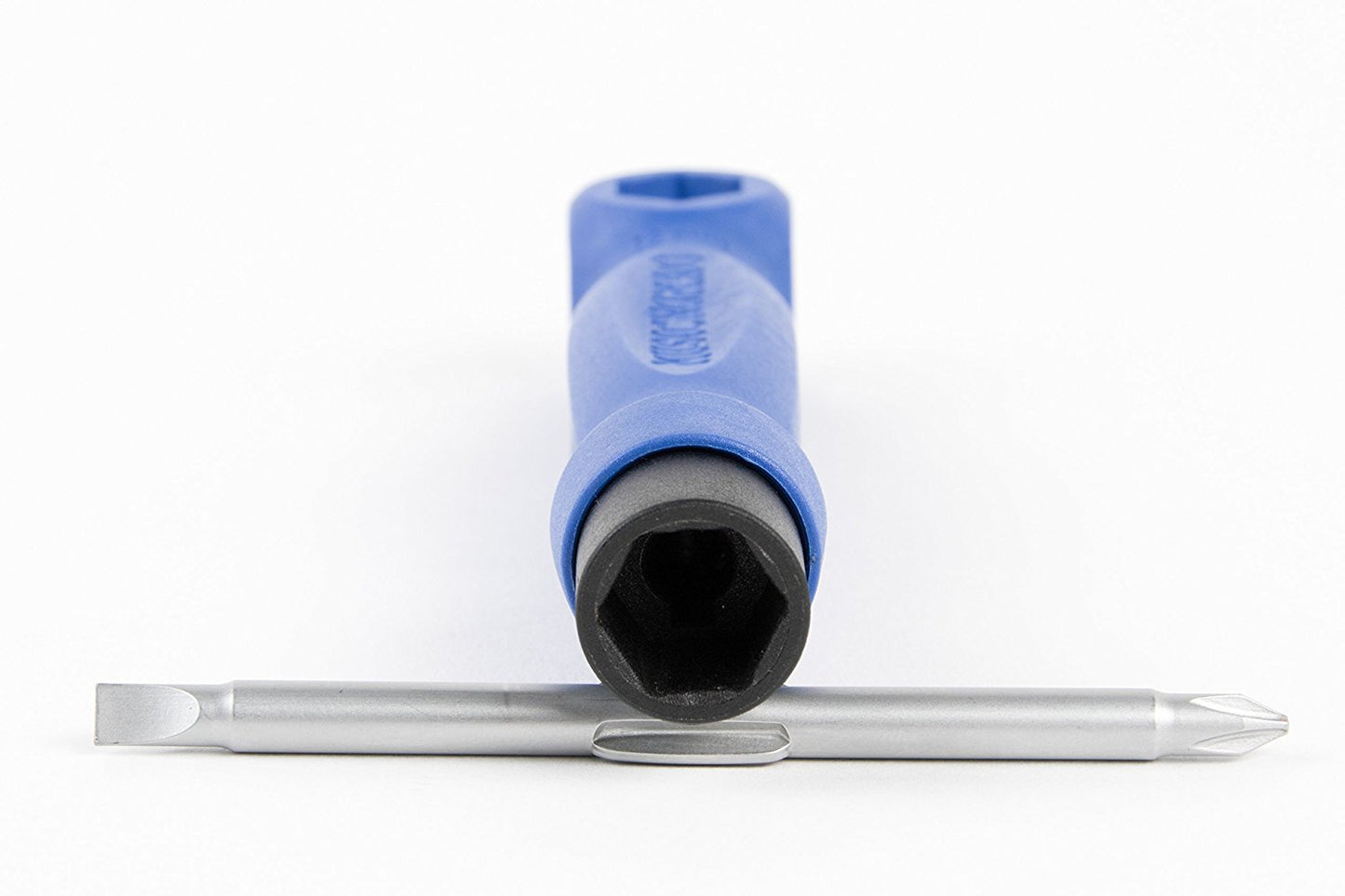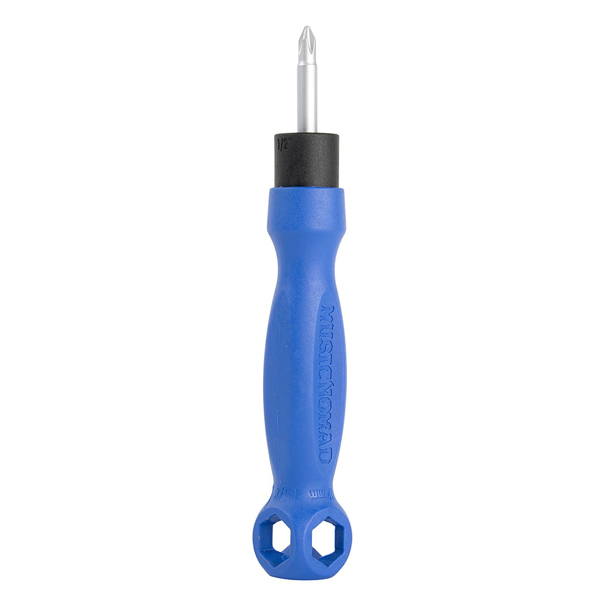 Music Nomad's patent pending, innovative design is perfect for tightening or loosening output jacks, control pots, tuning machine bushings & screws. It features both a Phillips & flat Blade screwdriver with our reversible shaft design and is engineered for the most popular hex wrench sizes: 10mm, 12mm, 14mm, 1/2" & 7/16". remove the screwdriver and use the 1/2" narrow profile hex wrench for tightening sunken pots and Tele cups. Just say no to metal. Our hex Wrenches are made with strong ballistic nylon material that can handle any job without the worry of scratching your hardware or finish. Small in size but big in results our 6"/15cm overall length is a must have for every guitar case.