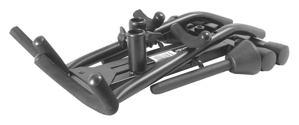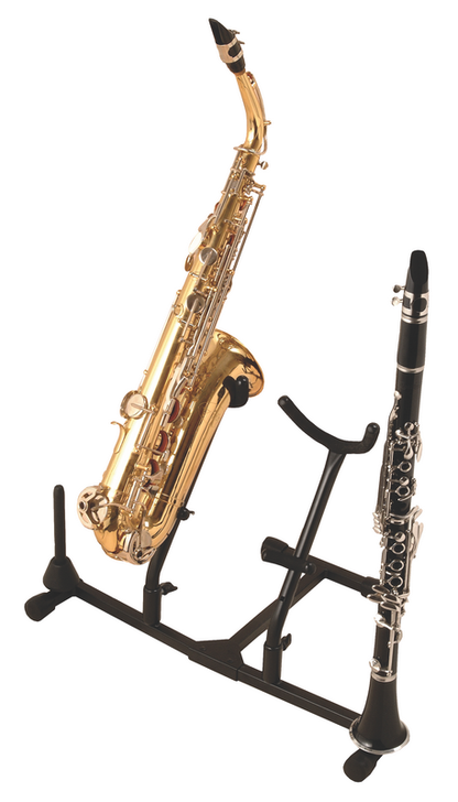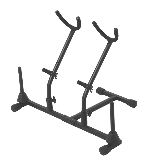 This versatile stand holds two alto or tenor saxophones in any combination and includes two screw-in pegs for either flutes or clarinets. The adjustable yoke supports are removable for storage and travel. Non-slip rubber feet and strong 7/8" square tubing make this stand an ideal choice for the professional horn player.