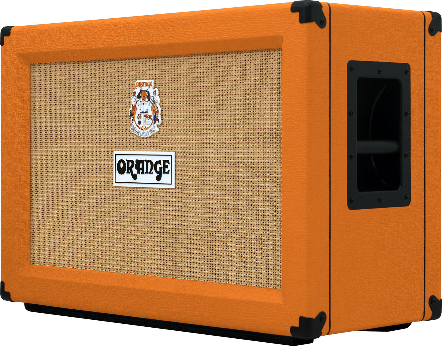 All Orange guitar cabinets are equipped with comfortable flush handles, and their legendary basket-weave grille cloth.