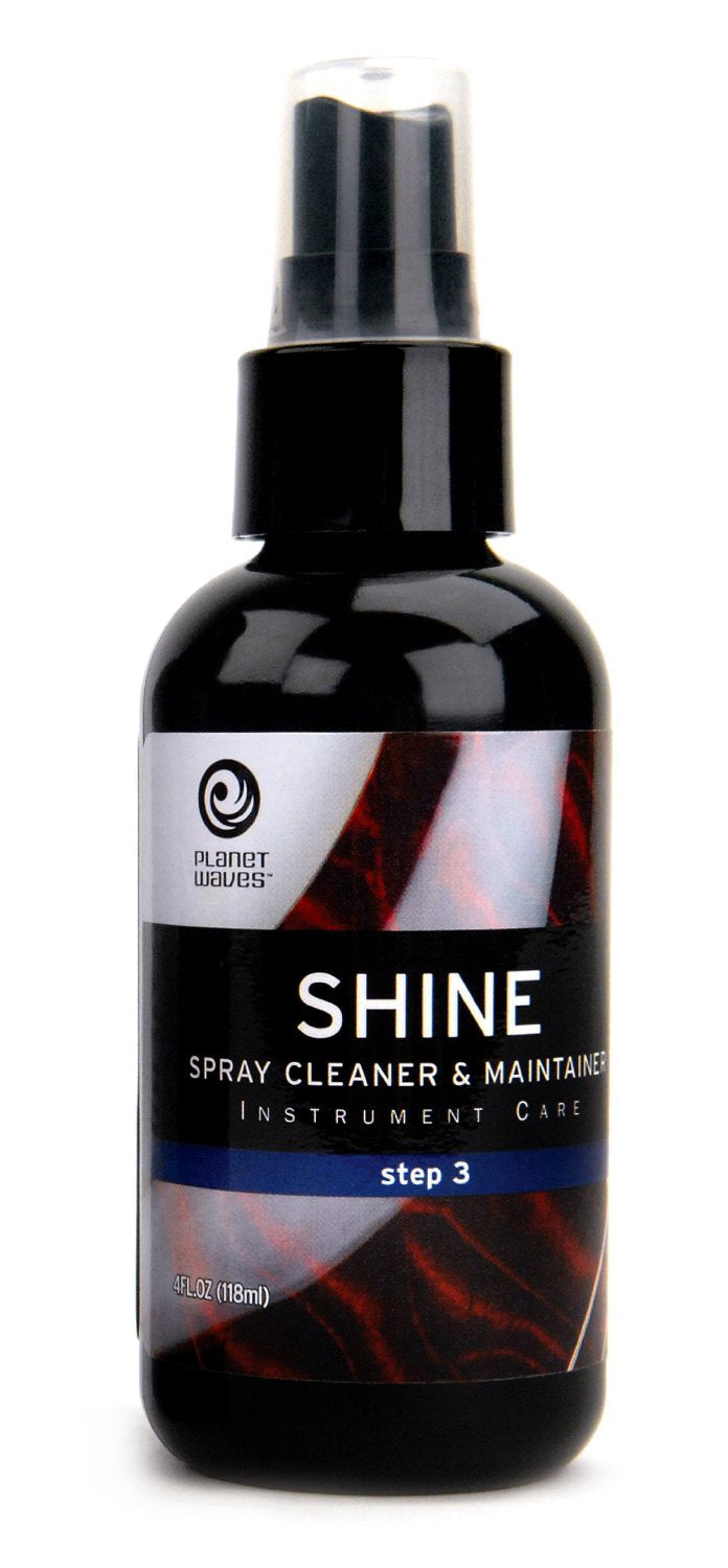 Planet Waves' new SHINE spray cleaner and maintainer keeps your finish looking like new every day. SHINE erases dust, fingerprints, and minor imperfections, while color enhancers bring out your finish's beauty, leaving it with the ultimate wet look. Spray a small amount on a dry Planet Waves polishing cloth daily, or as needed, and buff thoroughly into surface with a circular motion.