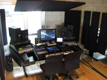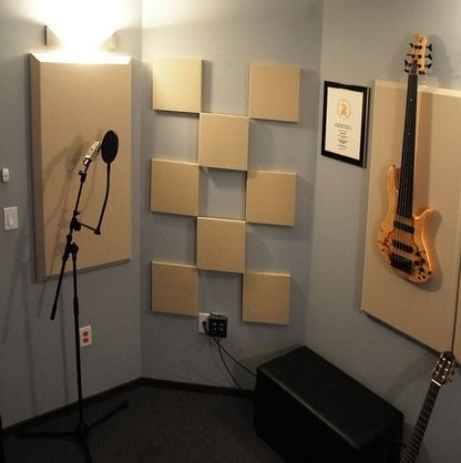 The kit itself is made up of a selection of 22 Broadway panels each of which is designed to address particular problems common to most rooms: Eight 12" x 48" Control Columns help tame side-to-side flutter echo and attenuate powerful near-wall reflections. Twelve 12" x 12" Scatter Blocks work double duty by reducing front-to-back flutter echo while providing Soft Diffusion™, a cost effective means of controlling the ambient reverb without overly deadening the room. All-important bass trapping is supplied with two full sized 24" x 48" Broadband absorbers that are corner-mounted for maximum low frequency attenuation to help reduce modal distortion and room resonance.