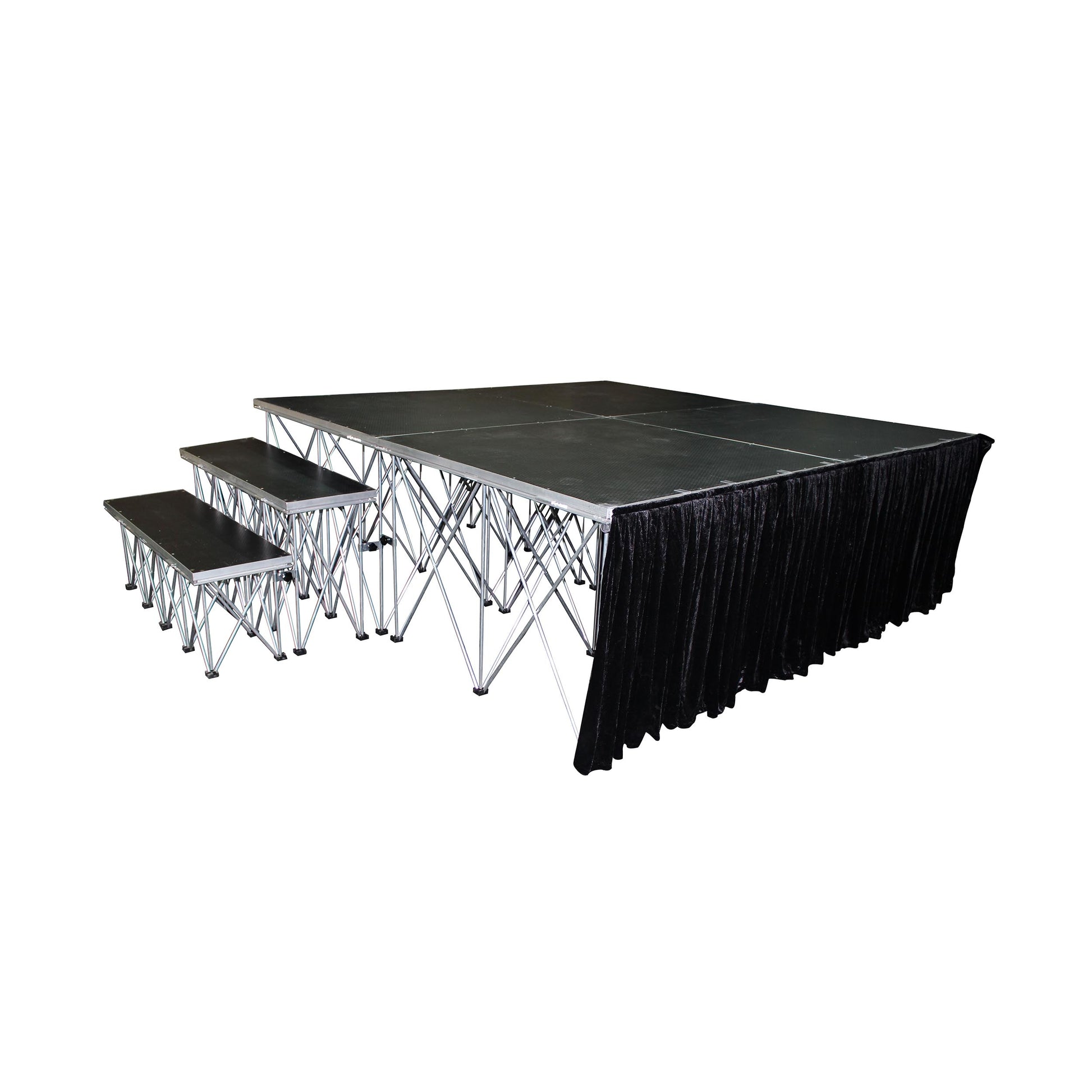 The ProX Stage Skirt measure 32" in height and 8 ft. in length and is the perfect piece to give your StageX staging a complete and professional look.