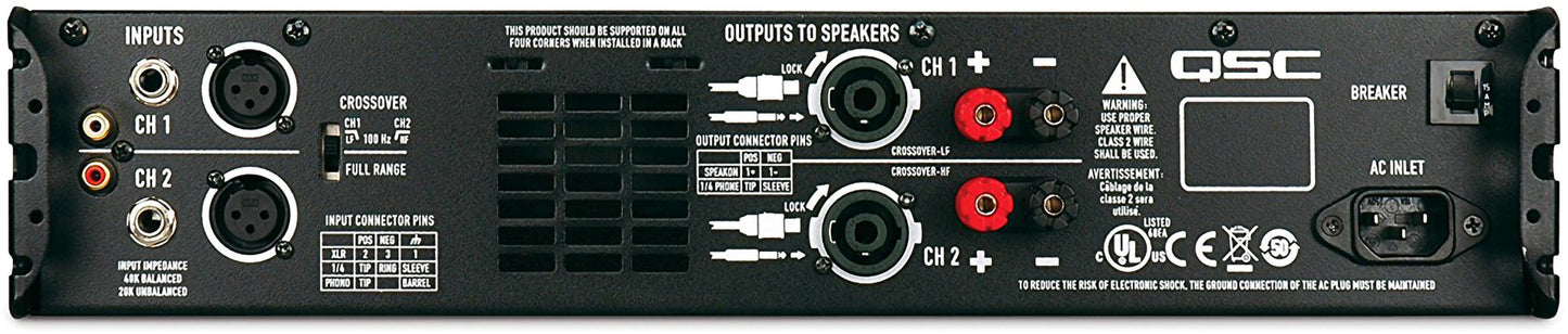 • Outputs: Speakon® combo accepts, 1/4-inch (TS) plugs or Speakon 2-pole and 4-pole plugs (connects two poles only). Binding posts support all other speaker wiring systems