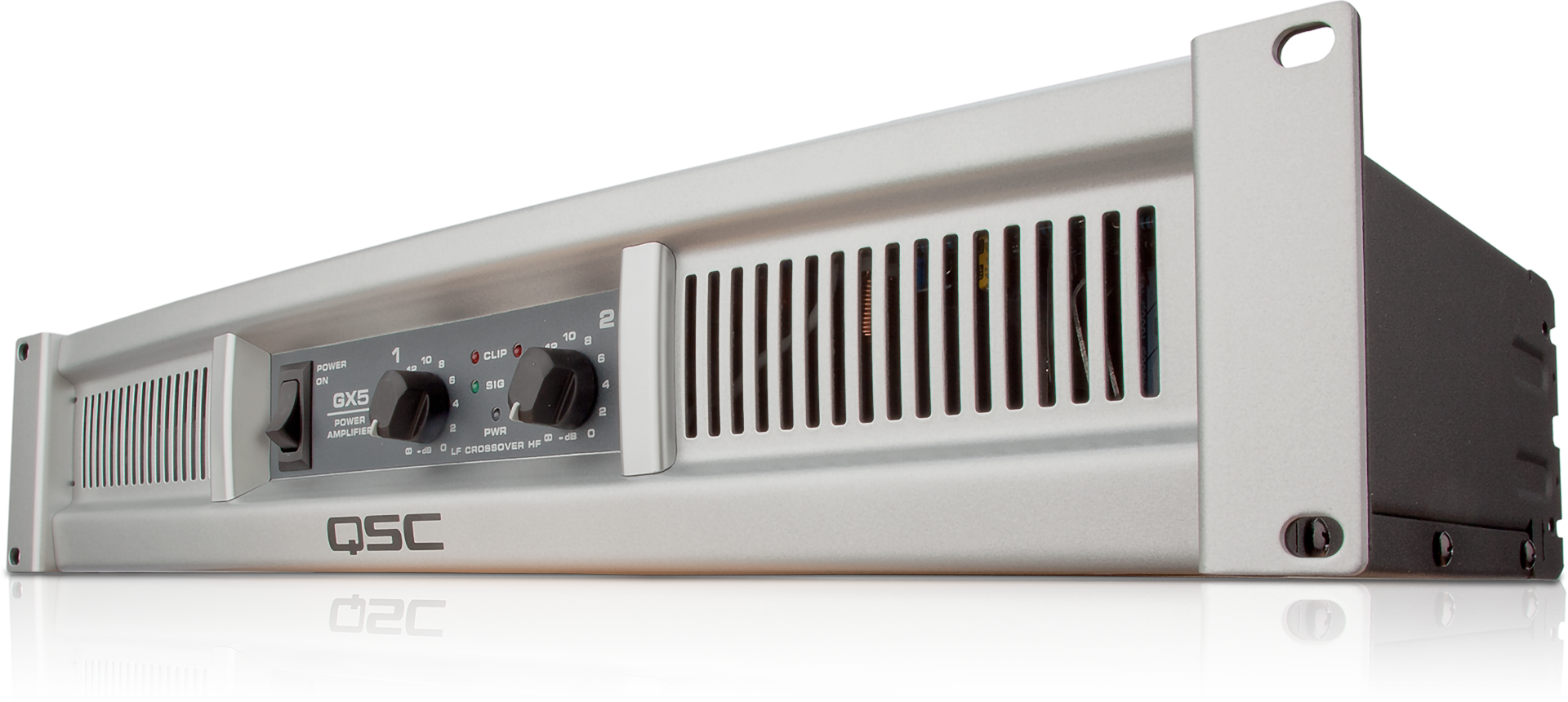 The QSC GX5 Stereo Power Amplifier is ideal for professional entertainers who require maximum performance and portability on a limited budget. QSC designers, headed by Pat Quilter, have optimized output and appearance of the rackmountable GX5 while reducing raw material cost and weight.