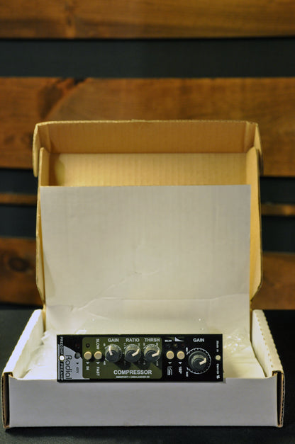 The PreComp channel strip is a combination mic preamplifier and compressor made for the popular 500 series rack format and designed to bring greater efficiency to the recording process by simplifying the signal path and gain stage management.