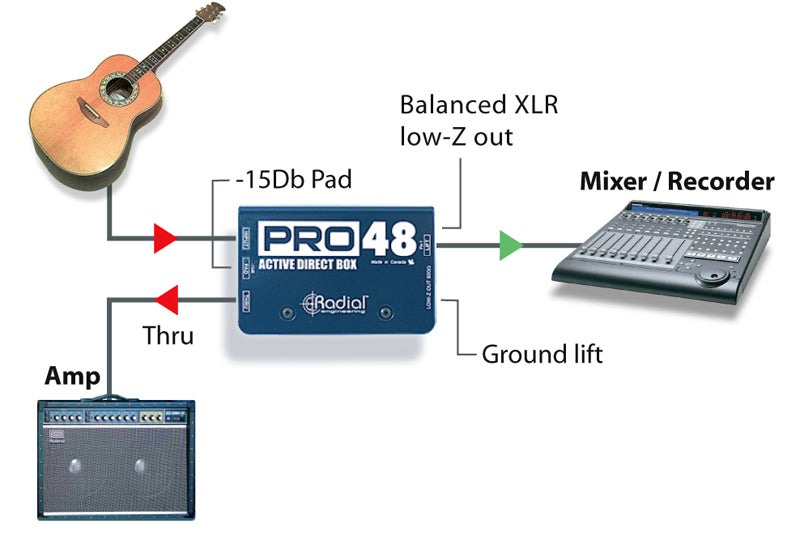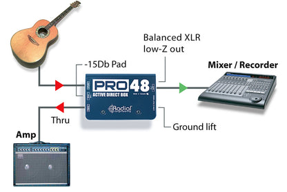 The Radial Pro48 is a high-performance 48V phantom powered active direct box designed specifically for today's higher output instruments.