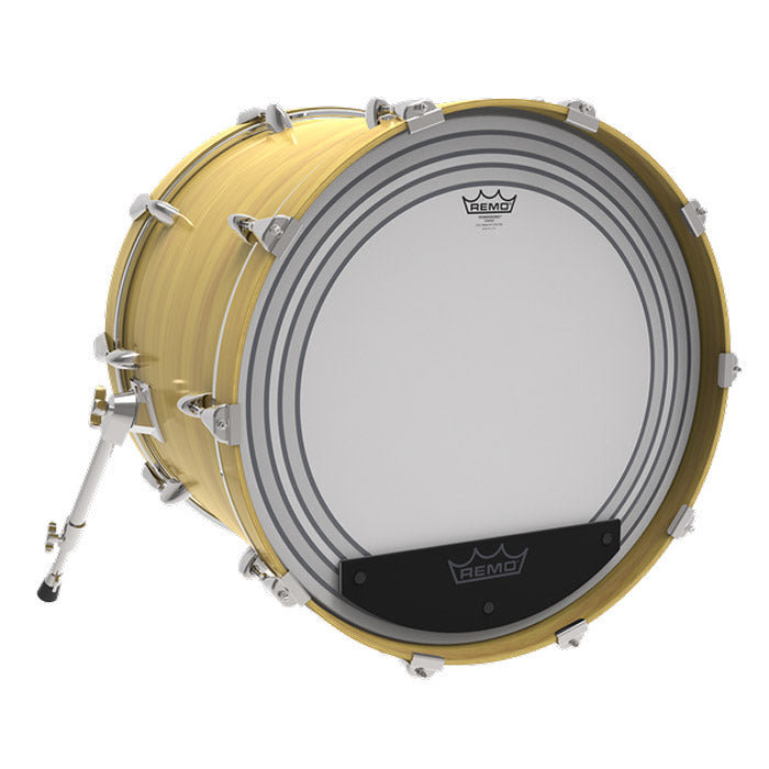 Powersonic® Coated Bass drumheads feature focused lows with subtle attack. Constructed with 2-plies of 7-mil and 5-mil Coated film, Powersonic® Coated Bass drumheads provide two specifically placed subsonic dampening rings and external snap on dampening system with impact patch for more attack. The external snap on dampening system allows you to customize your sound for different playing situations.