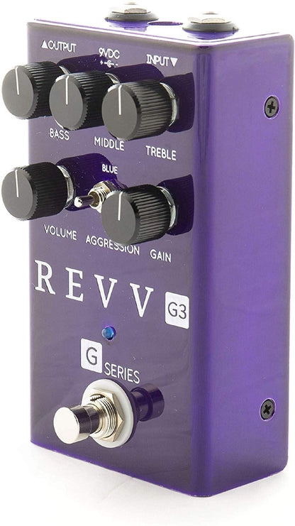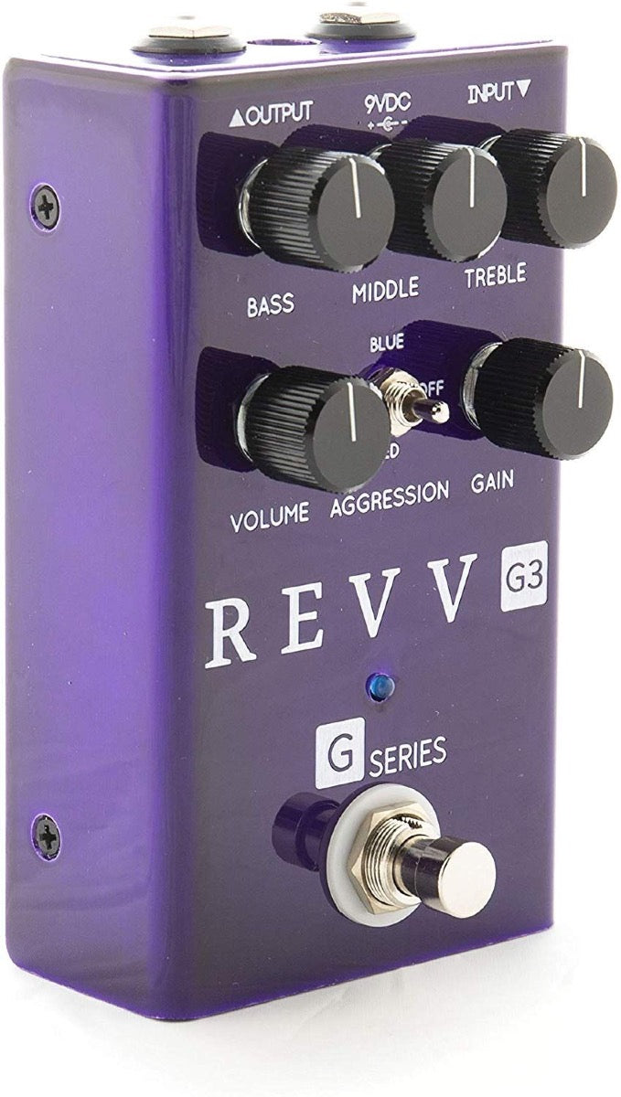 Revv G3 Distortion Pedal. Revv's Purple Channel 3 is one of the most unique tones in modern amps. Extremely tight & clear with the right amount of saturation for any situation. Now that tone is available to everyone in a less-expensive pedal format that's versatile & feels great under the fingers.