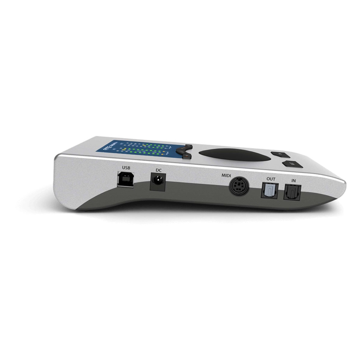 • +19 / +4 dBu switch on the bottom adds a direct way to reduce the output level, thus improves SNR for sensitive active monitors, avoids distortion / overload, and helps to keep TotalMix FX faders near 0 dB instead of high attenuations.