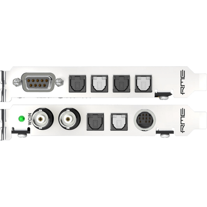 HDSP 9652 offers 3 x ADAT optical I/O, ADAT-Sync In, SPDIF I/O and word clock I/O. On top, there are 2 MIDI I/Os and TotalMix, a DSP-based real-time mixer/router, with hardware-calculated level metering and complete MIDI remote capability.