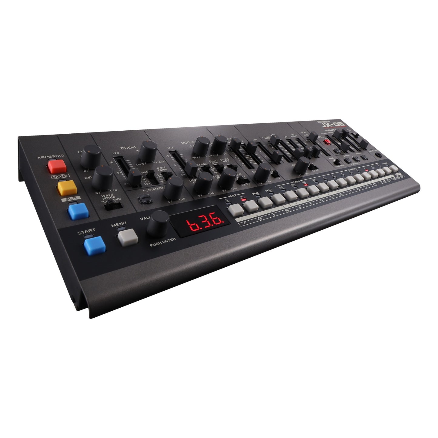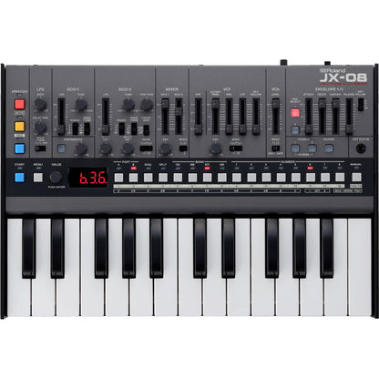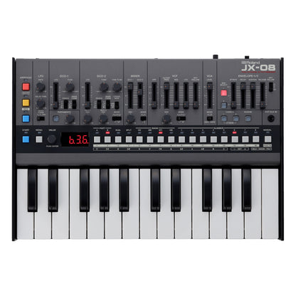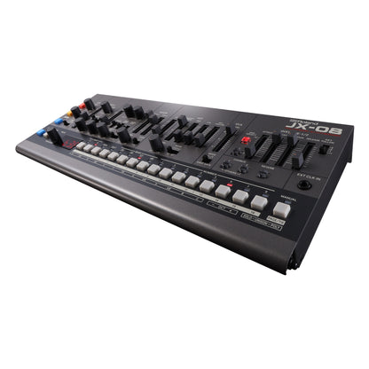 In 1985, Roland’s innovative JX-8P took hybrid synthesis a step further with a compelling new analog-digital voice. The instrument was instantly embraced by top session players, who forever embedded its warm pads, shimmery chorus, and crystalline textures into the era’s most popular tracks. The JX-08 reintroduces the unique sound of this sought-after classic in stunning detail, coupled with powerful new effects, a polyphonic sequencer, and more. And to enhance your creative flow, there’s a full panel of hands-on controls derived from the companion PG-800 programmer unit for the original hardware.