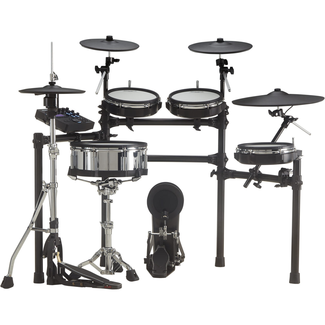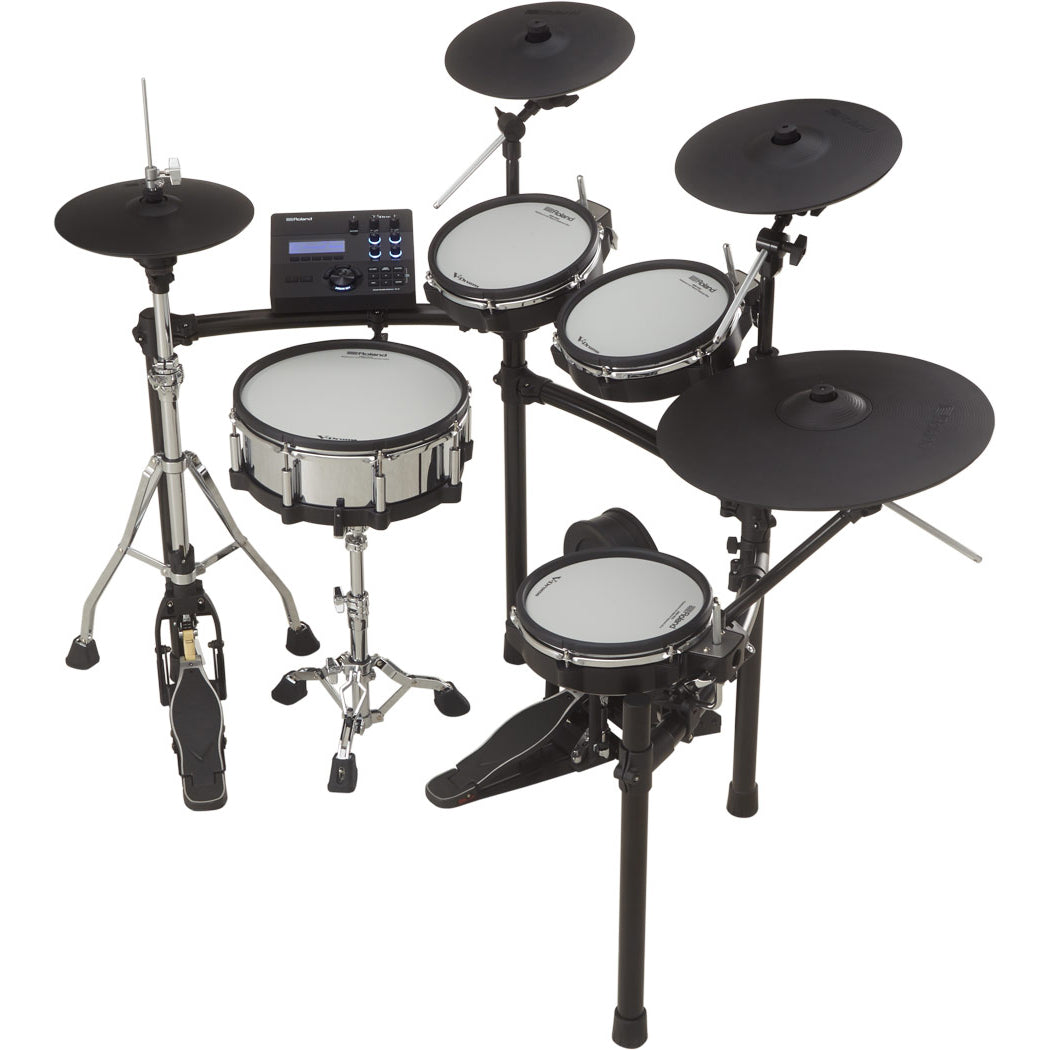 - 14" digital snare and 18" ride cymbal with high-resolution, multi-sensor triggering for unparalleled dynamics and accurate positional detection