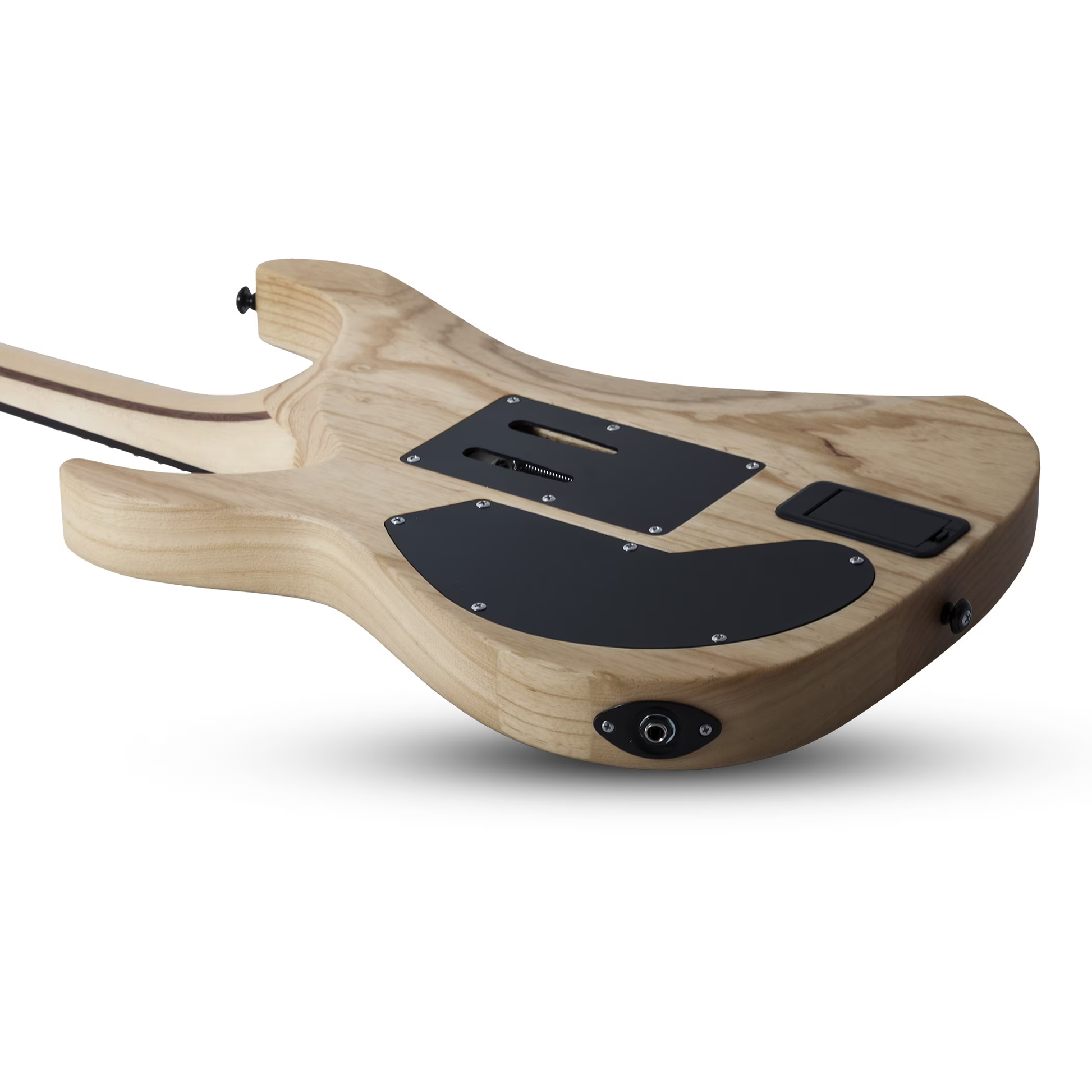 The maple/walnut multi-ply neck includes carbon fiber reinforcement rods and has an Ultra Thin “C” profile. The fingerboard is ebony with pearloid offset/reverse dot inlays, a 14" (355 mm) radius, and 24 X-jumbo frets. Scale length is 25.5" (648 mm). Neck thickness measures .748" (19 mm) at the 1st fret and .787" (20 mm) at the 12th fret. The nut is a Floyd Rose 1500 Series nut with a width of 1.625" (41.3 mm), and the truss rod is a 2-way adjustable rod with a 5/32" (4 mm) Allen nut.