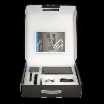 Make your presentations come to life! Rugged, reliable and easy-to-use, XS Wireless delivers renowned Sennheiser sound to small venues, conference rooms or houses of worship. The XSW 12 Presentation Set includes a compact body pack transmitter and inconspicuous omnidirectional microphone that provides natural speech reproduction. An all-metal True Diversity receiver offers 960 tunable frequencies, with powerful scan and sync functions that ensure up to 10 hours of trouble-free operation.