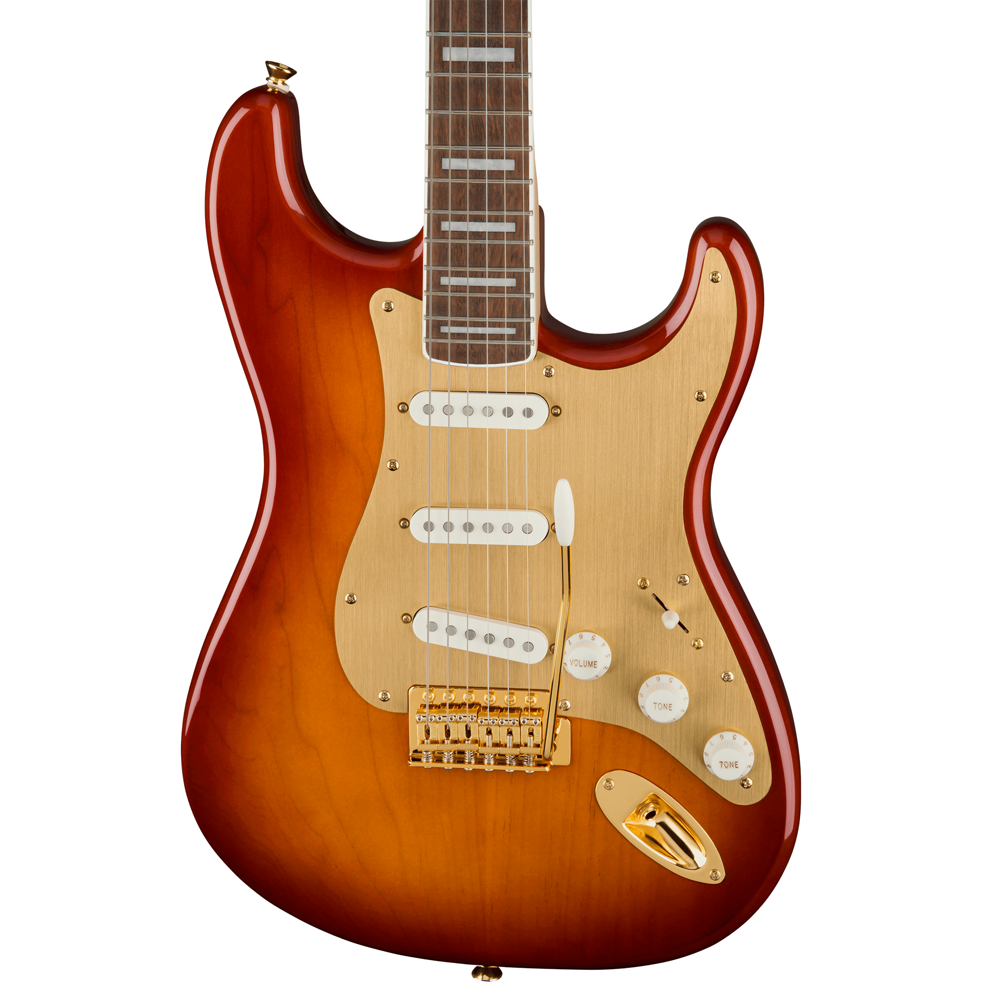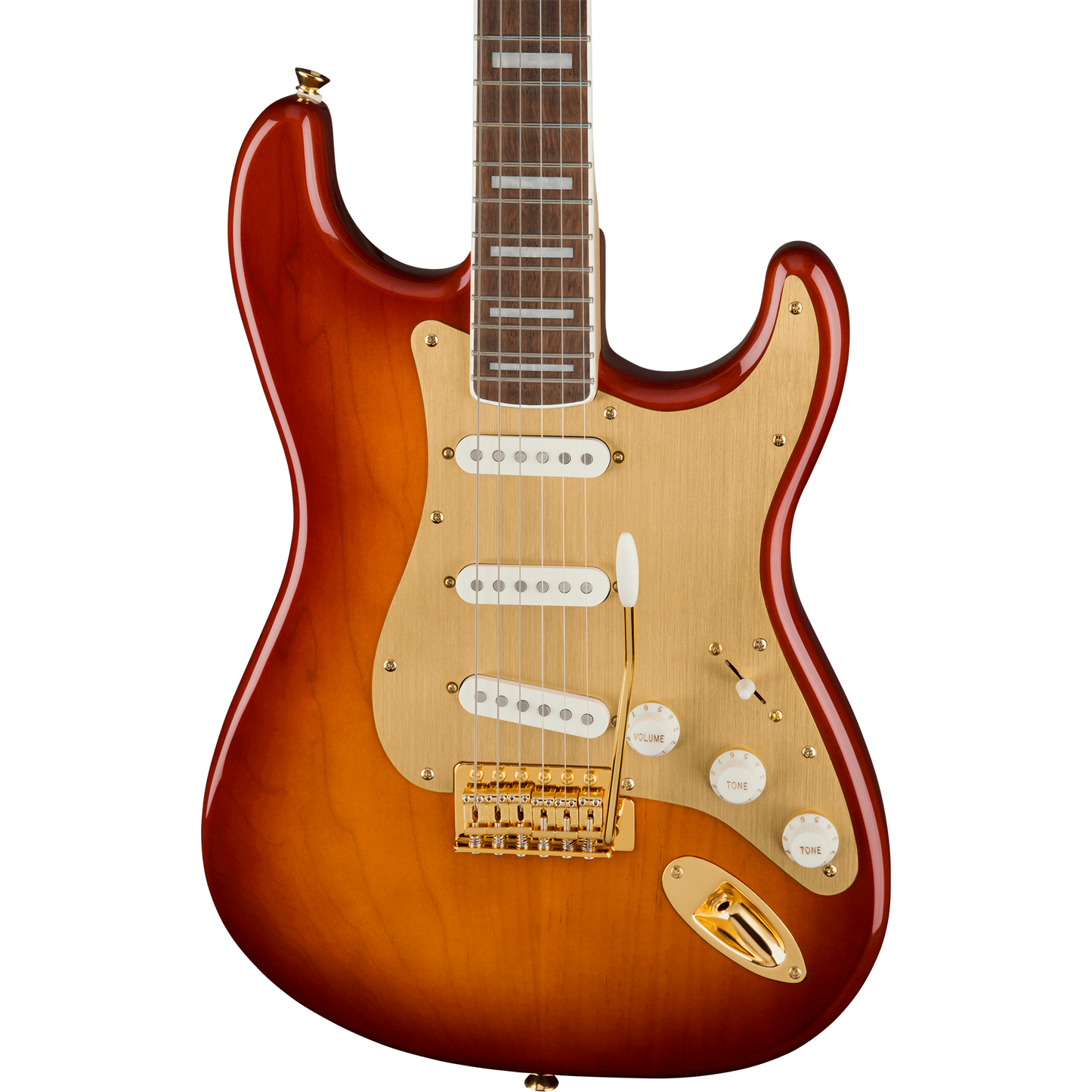 Product Name Squier 40th Anniversary Strat, Gold Edition, Laurel Fingerboard, Sienna Sunburst