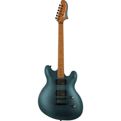 The Starcaster broke the mold of semi-hollow guitar design with its offset body shape when it was introduced in the ‘70s, offering versatile sounds and out-of-this-world styling for the most adventurous players. The Squier® Contemporary Active Starcaster® is an evolution of the original Fender model, engineered with a sealed semi-hollow body for minimized feedback and powered by dual Squier SQR™ active ceramic humbucking pickups for massive high-output signal. The roasted maple neck was chosen for its optimal tone and stability, and a sculpted heel design allows for improved access all the way to the 22nd fret. High-performance components round out the feature list and include a fully adjustable bridge with stop tailpiece for rock-solid string feel, and a set of sealed-gear tuning machines with split shafts for smooth tuning action and easy restringing. Eye-catching styling cues include stealthy black chrome hardware and a sleek matching painted contoured headstock with chrome logos for a premium look.