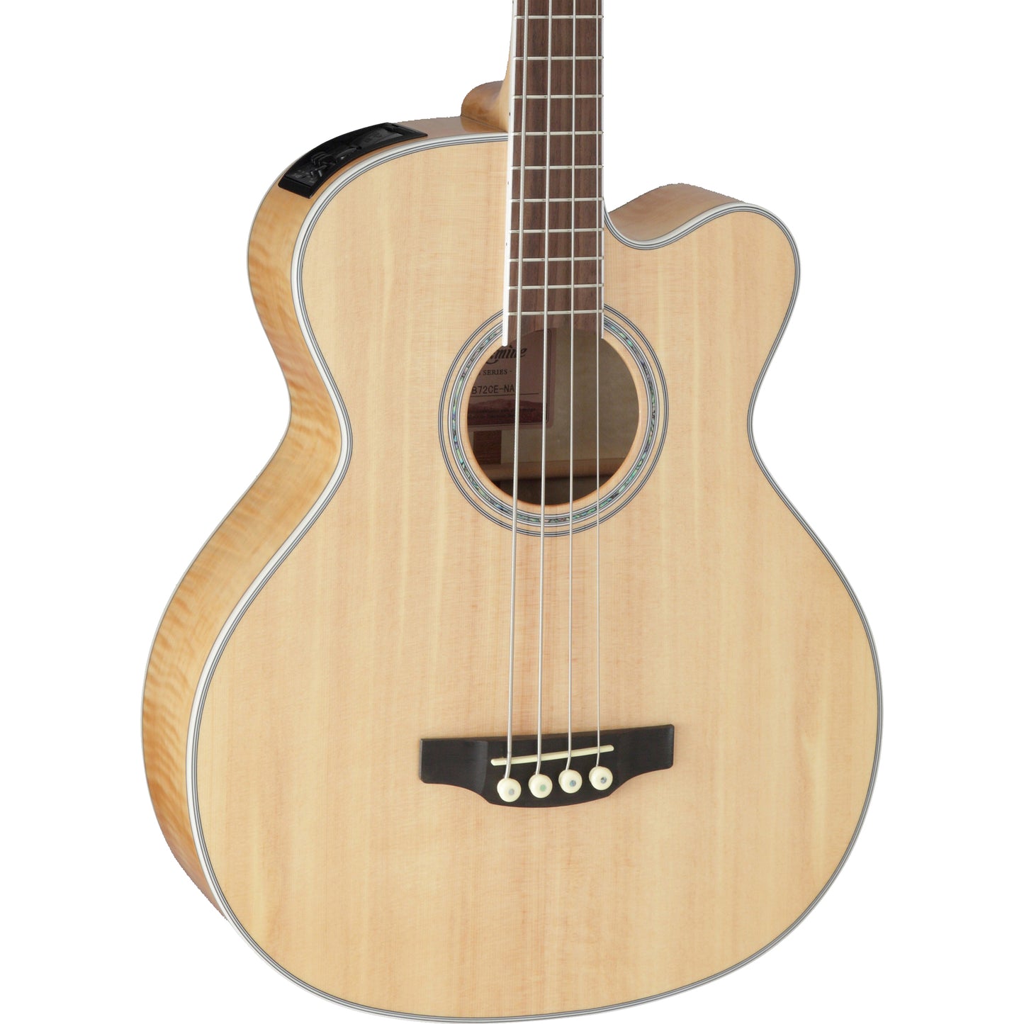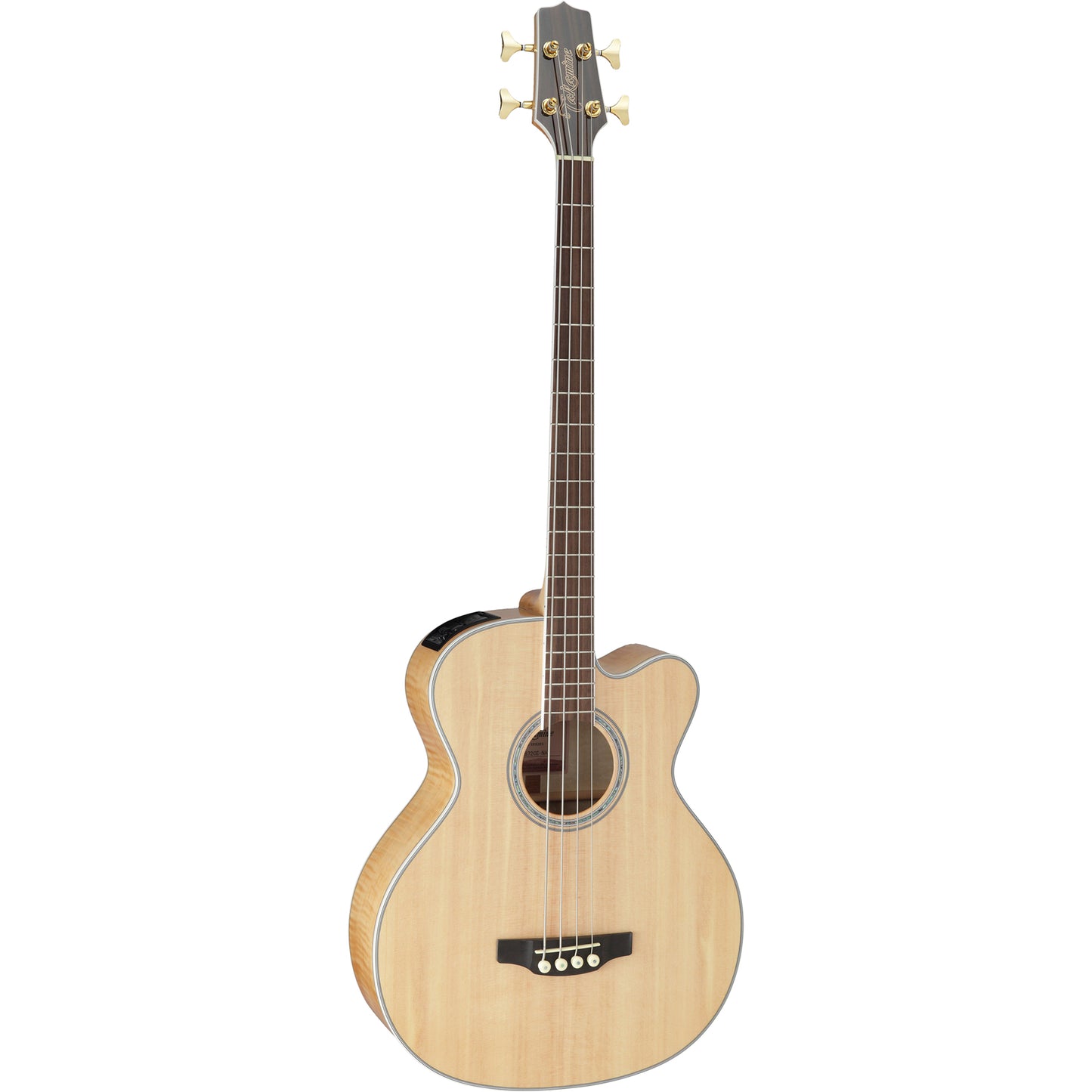 Featuring a solid spruce top and flame maple back and sides, the GB72CE produces all the volume and robust sound that players expect from a jumbo bass guitar. The slim mahogany neck and 16”-radius bound laurel fingerboard provide great feel and playability, while the onboard Takamine TK-40B preamp system gives you a built-in tuner, three-band EQ and gain controls, mid-shift control, bass-boost switch and EQ bypass switch for the ultimate in versatility and sound quality.