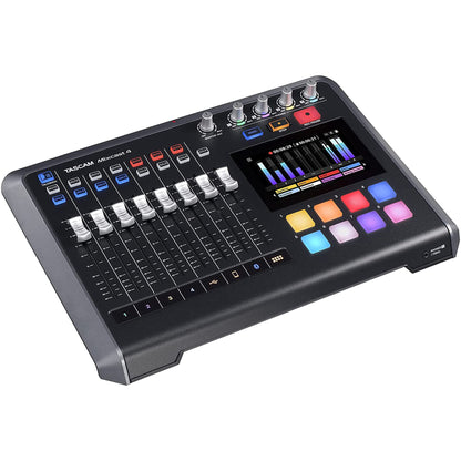 The Mixcast 4 is a one-stop workstation that allows for the recording and mixing of sound sources without complicated settings. It provides all audio-related operation and workflow needed for live-streaming, events, podcasts, and other applications. The bundled TASCAM Podcast Editor software will expand the ability to assign content and sound effects to the internal touchpads, and will allow for smooth and easy remote track arming, effects assignment, audio editing and more without the need for expertise and complexity.