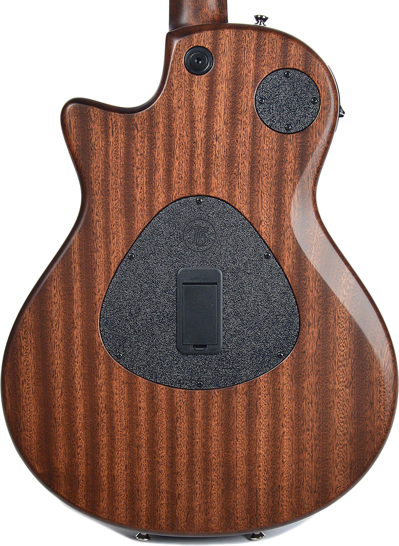 The deep color and rich grain of a mahogany top give the T5z-12 Classic a vintage, earthy character. Electric-friendly features include a compact body, a 12-inch fretboard radius, and jumbo frets, which add up to a fast, fluid playing experience. Like its six-string sibling, the 12-string incorporates a three-pickup configuration with an acoustic body sensor, a concealed neck humbucker, and a visible bridge humbucker, plus five-way switching and onboard tone controls, giving players an incredibly versatile electric/acoustic 12-string. Appointments include Small Diamond inlays and nickel hardware, an unbound body, and satin classic mahogany finish. The guitar ships in a T5z gig bag.
