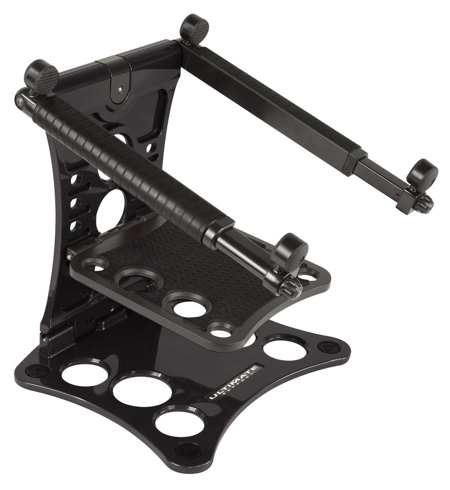 Most performance, gigging, and recording spaces were not built with the laptop musician, DJ, remix artist, or producer in mind. Say hello to the Ultimate Support Hyperstation. It gets the laptop up off the desk, but still allows space for turntables, mixers, and other electronic equipment. What's more, it does so with a whole lot of style. The Hyperstation is available in three colors, folds up quickly for transport, and built to take whatever your next musical outing can throw at it.