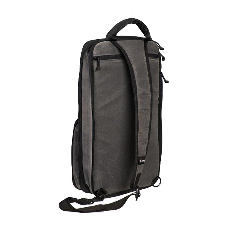 Made from a waxed premium canvas material for a great vintage style, the Professional Drumstick Bag features an adjustable, padded shoulder strap and heavily padded handle for comfort. Also includes reverse track zippers for waterproofing, and a front pocket for music.