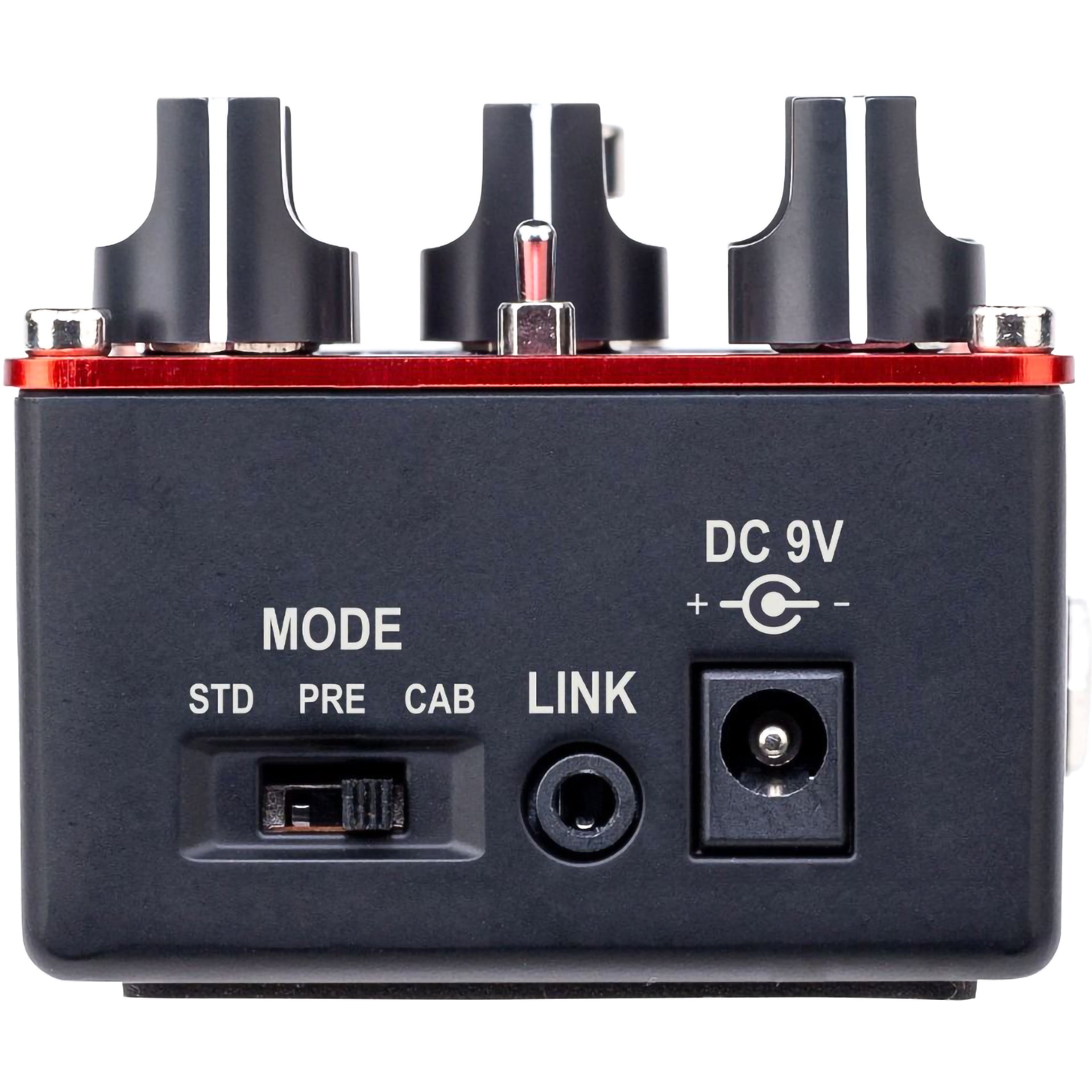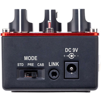 You can switch modes as appropriate for the way in which you’re using the pedal. STANDARD: The pedal outputs an instrument-level signal. Connect to the input of your guitar amp in the same way as when using a conventional pedal. PREAMP: The pedal outputs a line-level signal. Connect to the return jack of your amp or to the input of your power amp to then use with a guitar cabinet. CAB-SIM: The pedal outputs a line-level signal with an analog cabinet simulator. Connect to your mixer or DAW for direct guitar tones.