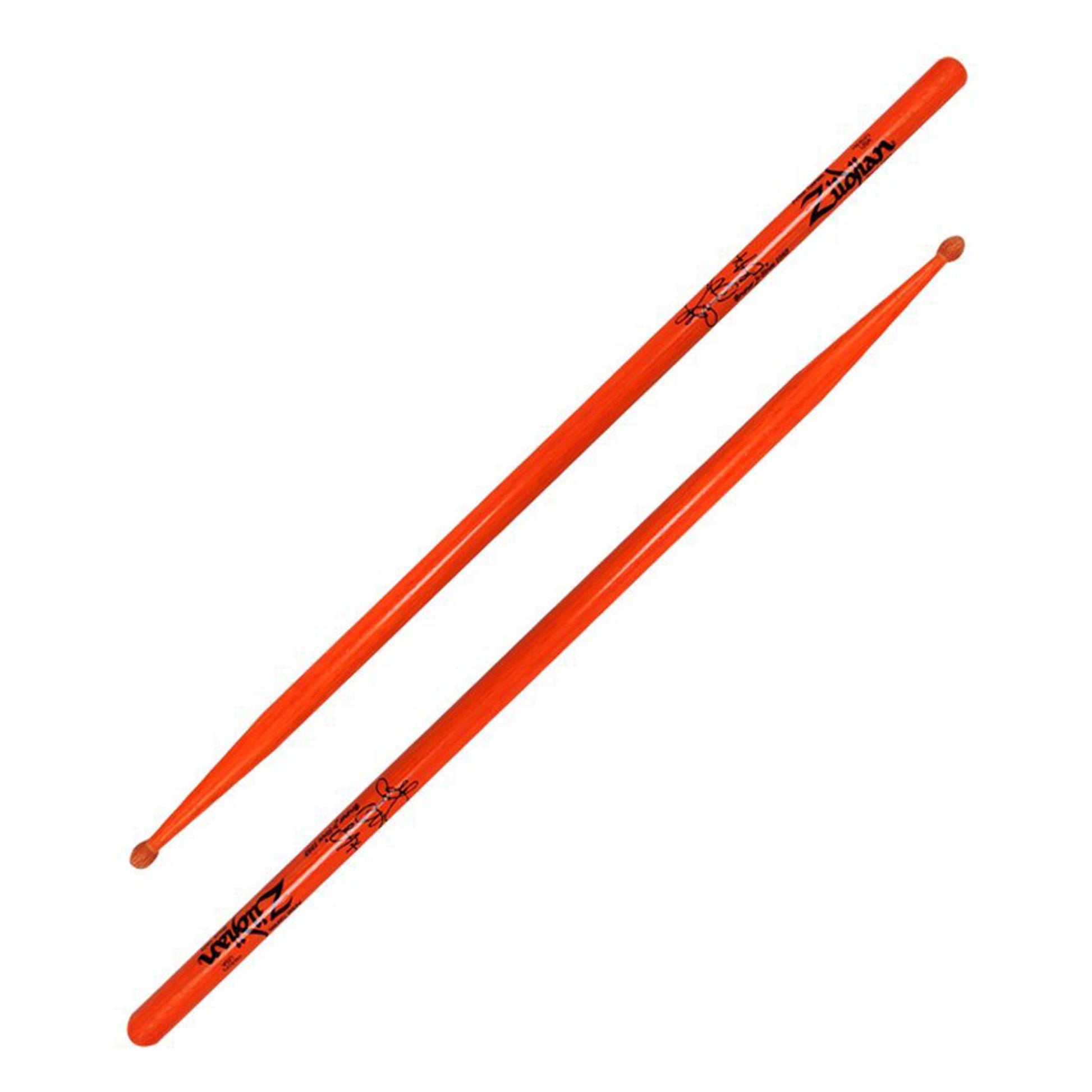 Ronald Bruner Jr's revised drumstick model now features a multi-layer bright orange finish. This finish features super vibrant color that glows under black light. A great all-around 5A type stick with a pinpoint round bead made from Select U.S. Hickory.