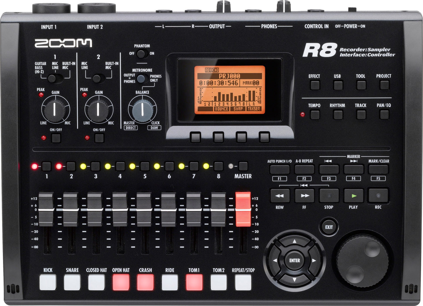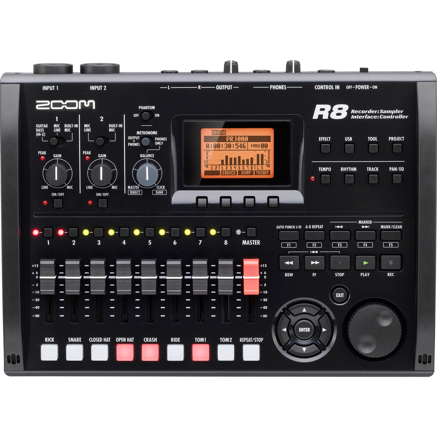 Zoom R8 Multi-Track SD Recorder, Sampler & USB Interface. The Zoom R8 Recorder Interface Controller has 8-channel playback, 2-channel simultaneous recording with 48V phantom power available on 2 tracks.